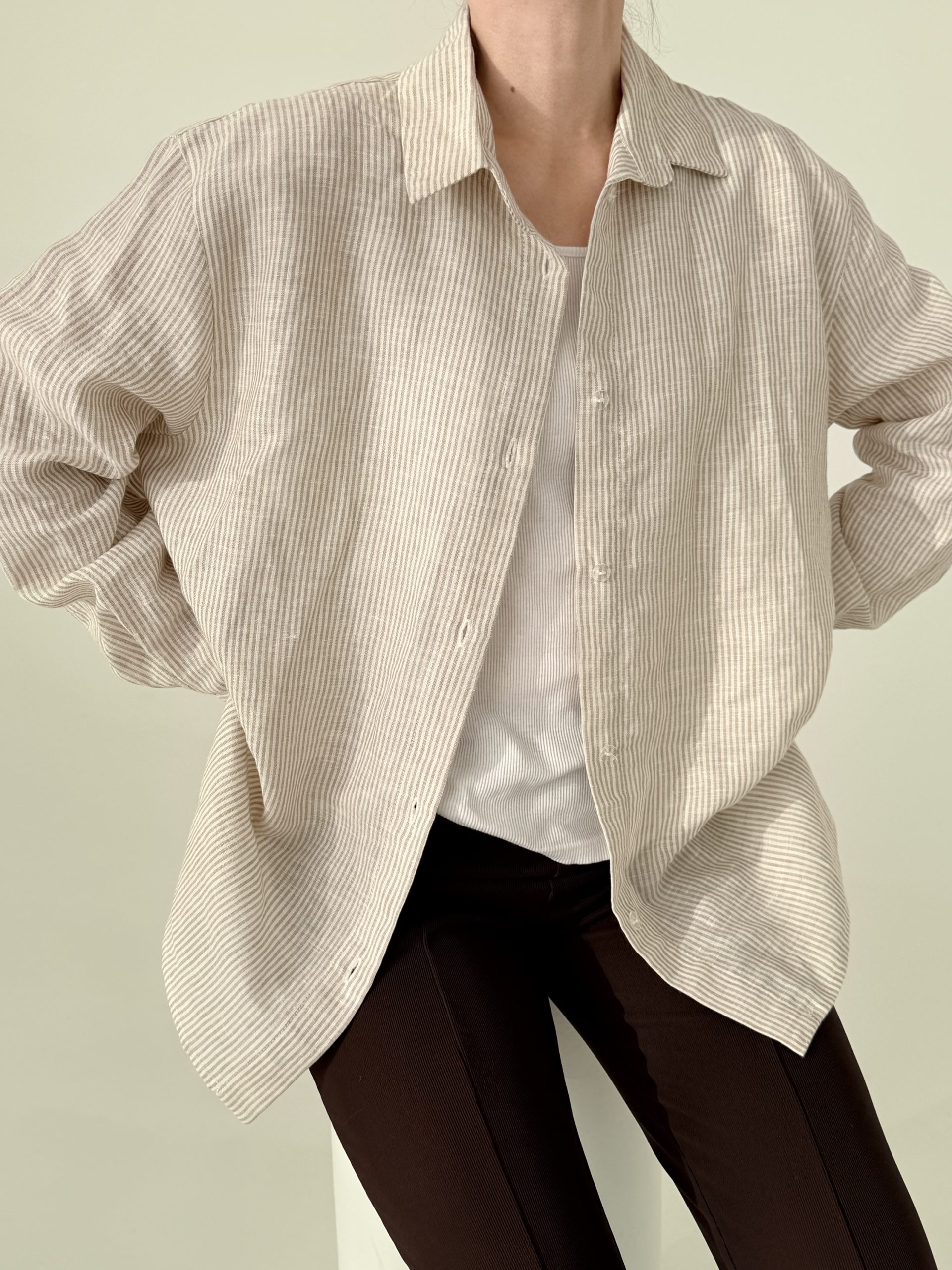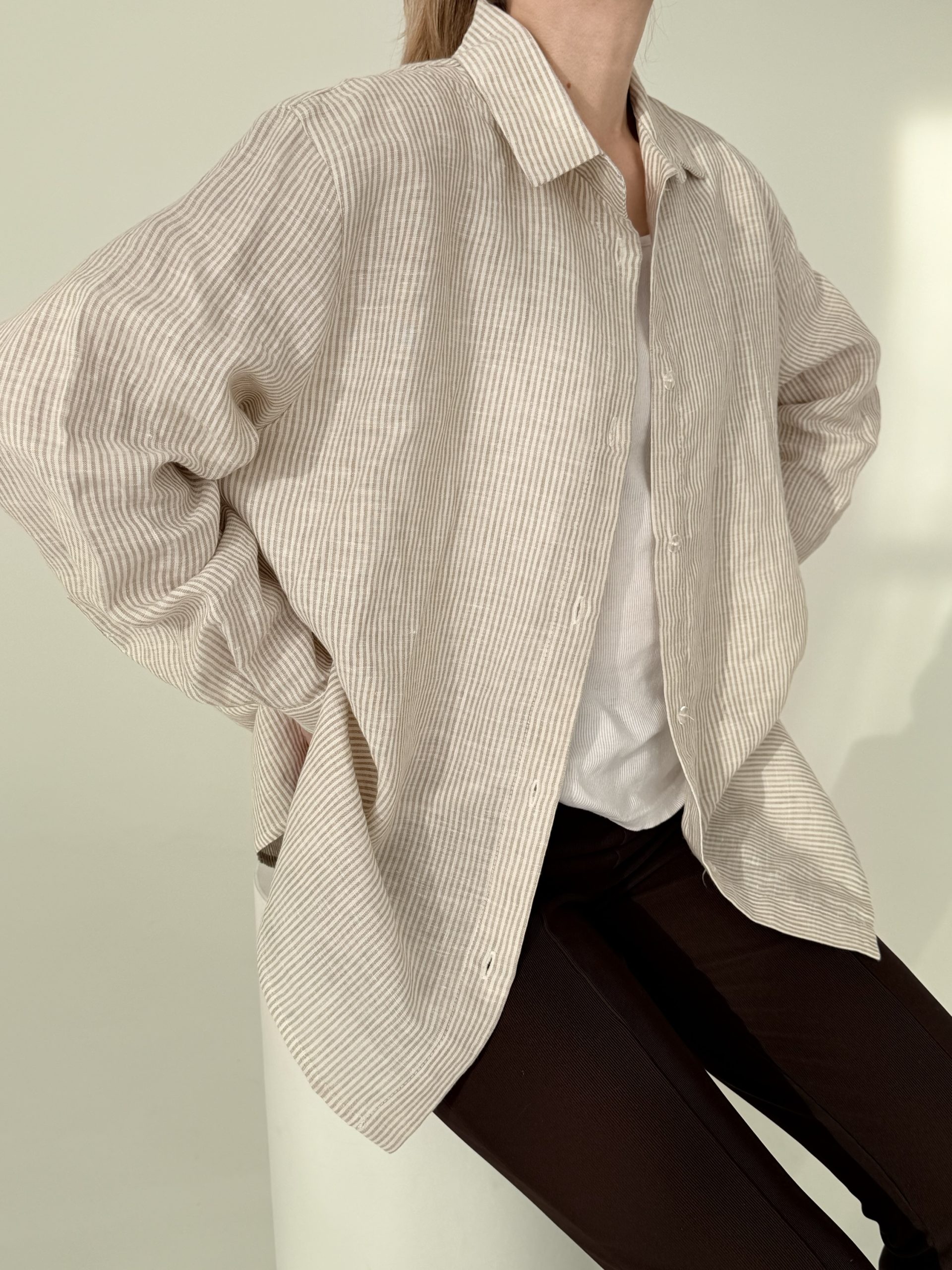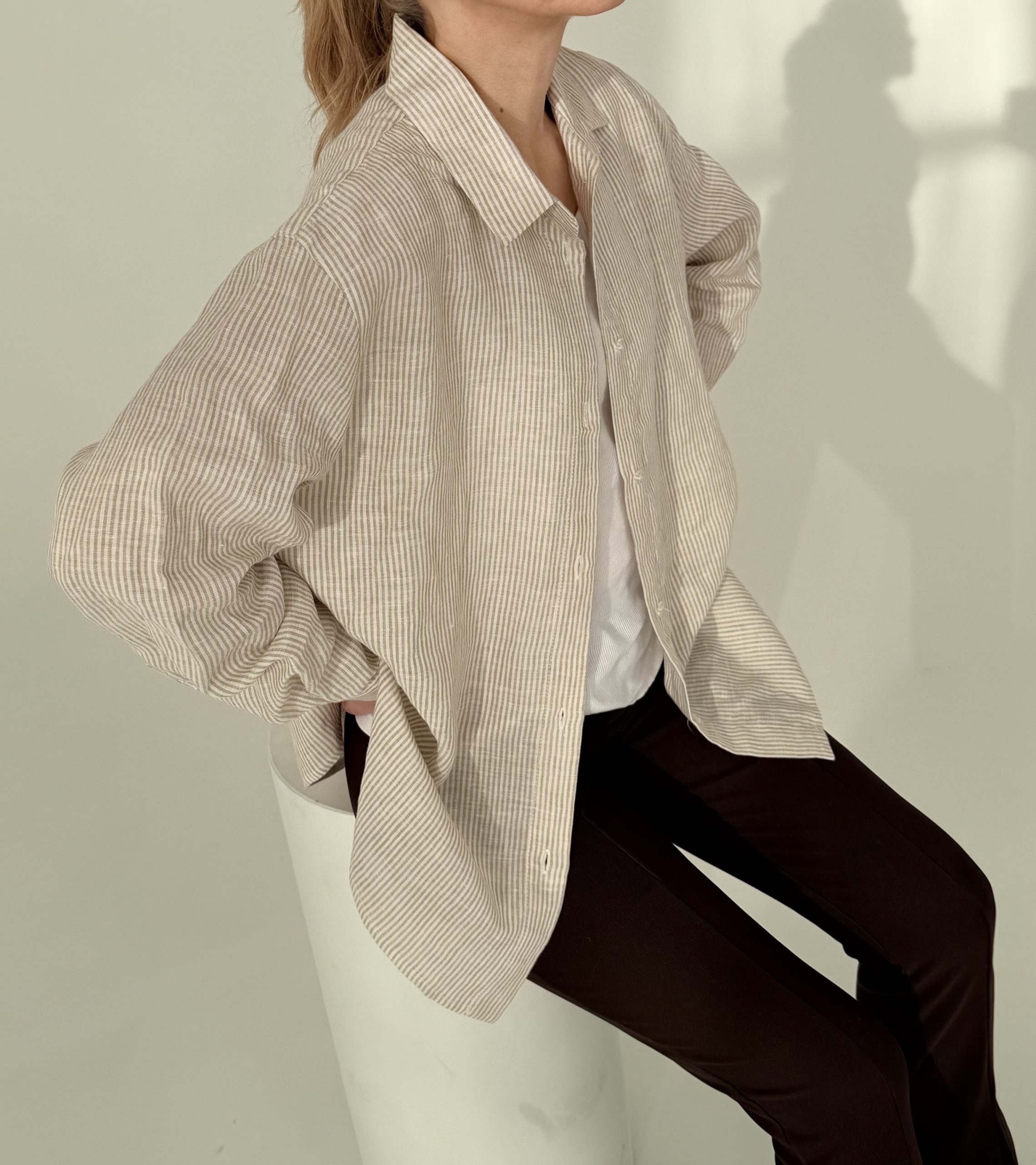 „Oversize” tipo marškiniai „Klasika”. Turbūt nieko nenustebinome, kad marškiniai ir vėl platūs, ir vėl patogūs, ir vėl nuostabūs :). Marškinių apykaklė šį kartą klasikinė, taip ir pavadinimas išaiškintas 😀 Marškinių galas prailgintas, rankogaliai su sagutėmis. Lyg ir nieko naujo, bet taip patogu ir kasdieniškai elegantiška, kad neįmanoma neįsimylėti. Marškinius gali dėvėti atsegtus, susegtus, sukištus į sijoną, palaidus prie kelnių, jie transformuosis iš oficialesnio įvaizdžio į visiškai kasdienišką, viskas priklauso tiesiog nuo nuotaikos ar aplinkybių.