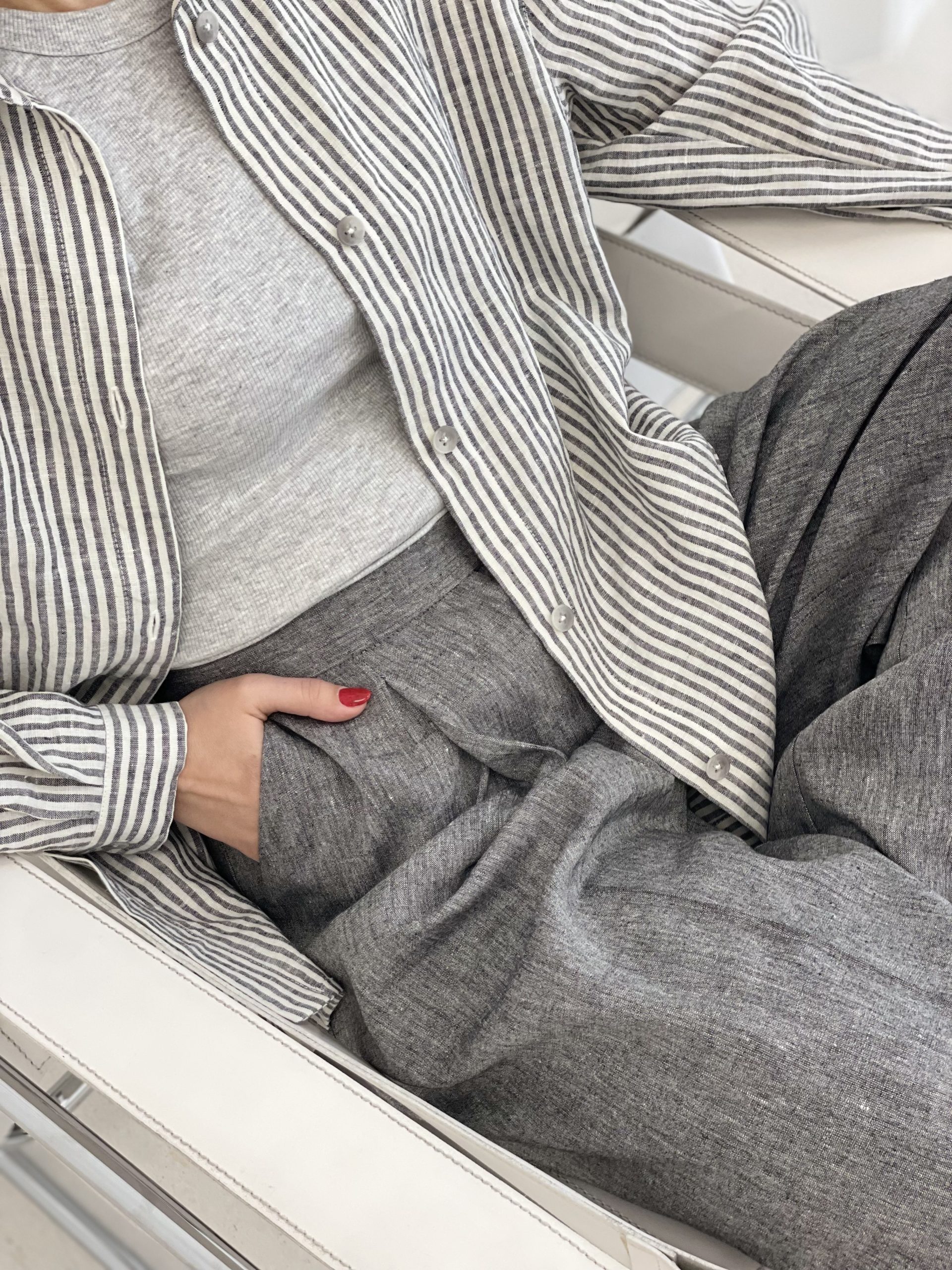 Marškiniai „Klasika” tamsiai pilki, Dryžuoti
