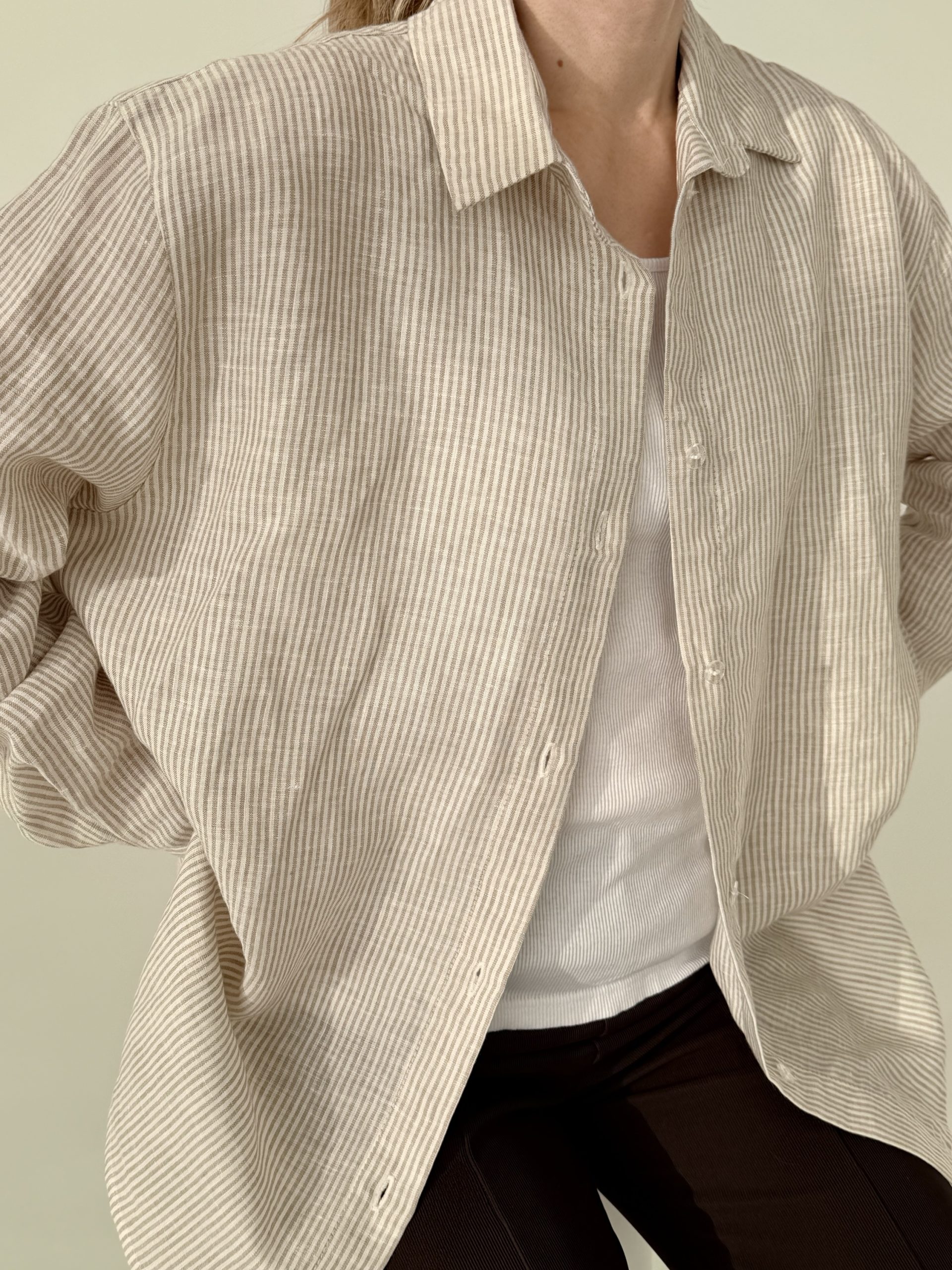 „Oversize” tipo marškiniai „Klasika”. Turbūt nieko nenustebinome, kad marškiniai ir vėl platūs, ir vėl patogūs, ir vėl nuostabūs :). Marškinių apykaklė šį kartą klasikinė, taip ir pavadinimas išaiškintas Marškinių galas prailgintas, rankogaliai su sagutėmis. Lyg ir nieko naujo, bet taip patogu ir kasdieniškai elegantiška, kad neįmanoma neįsimylėti. Marškinius gali dėvėti atsegtus, susegtus, sukištus į sijoną, palaidus prie kelnių, jie transformuosis iš oficialesnio įvaizdžio į visiškai kasdienišką, viskas priklauso tiesiog nuo nuotaikos ar aplinkybių.
