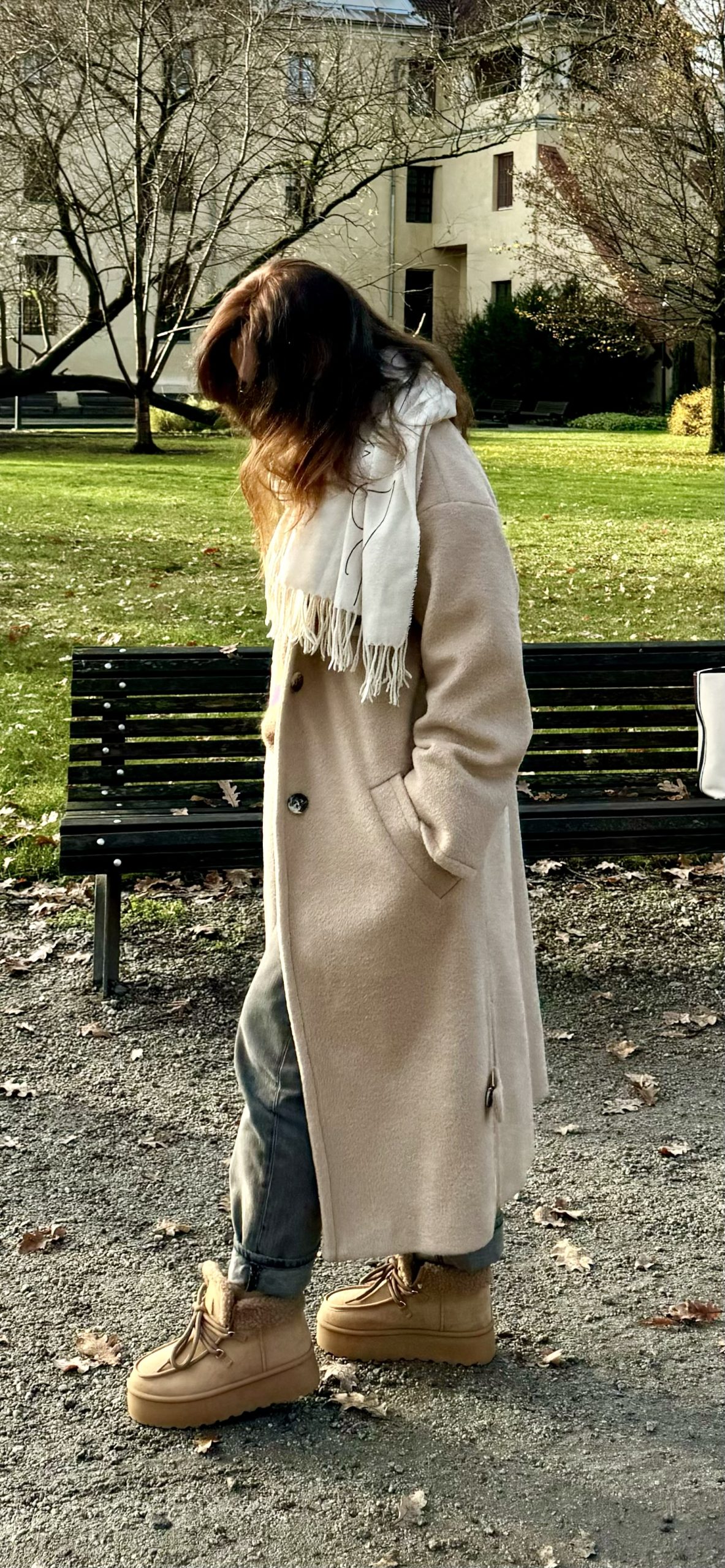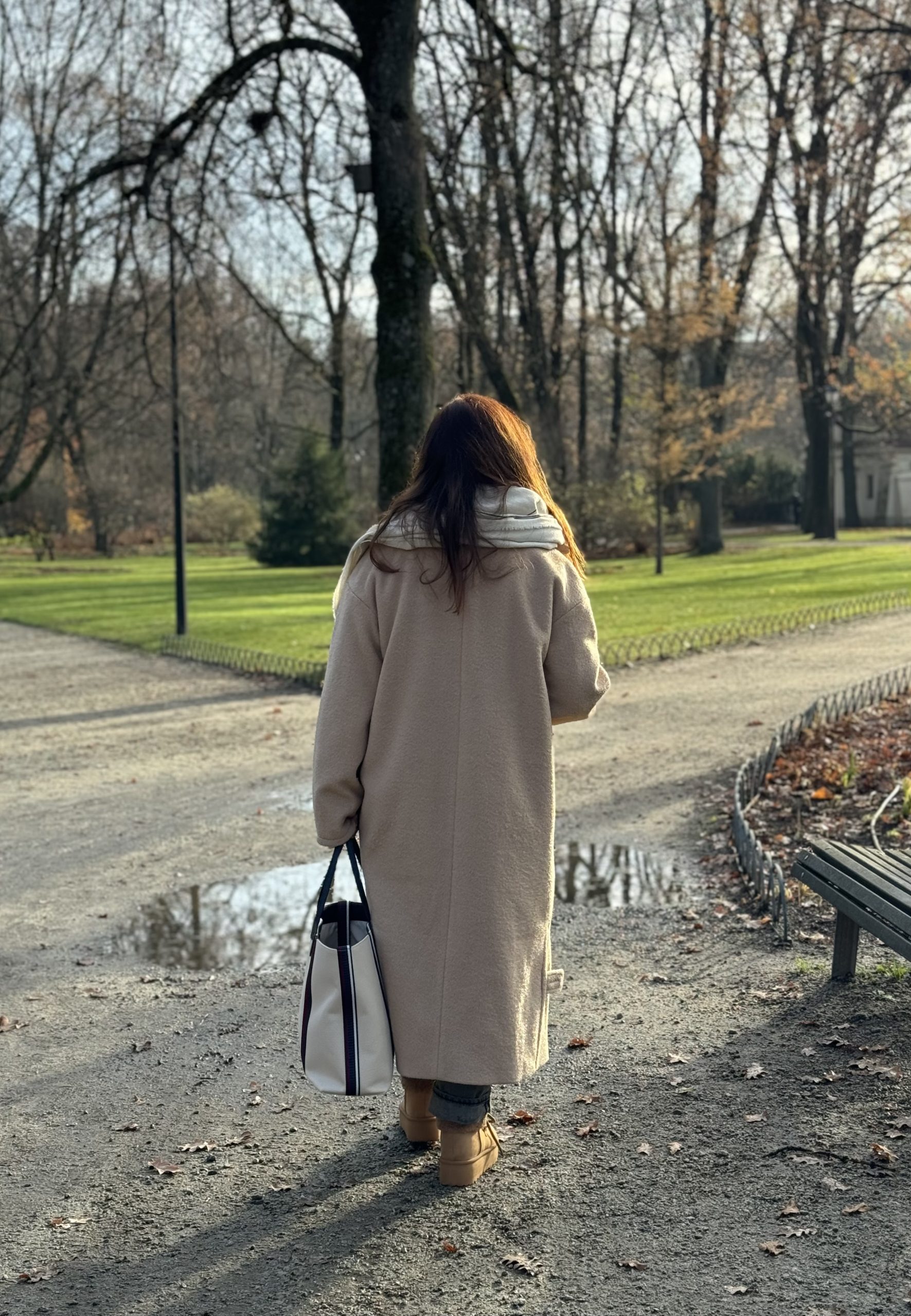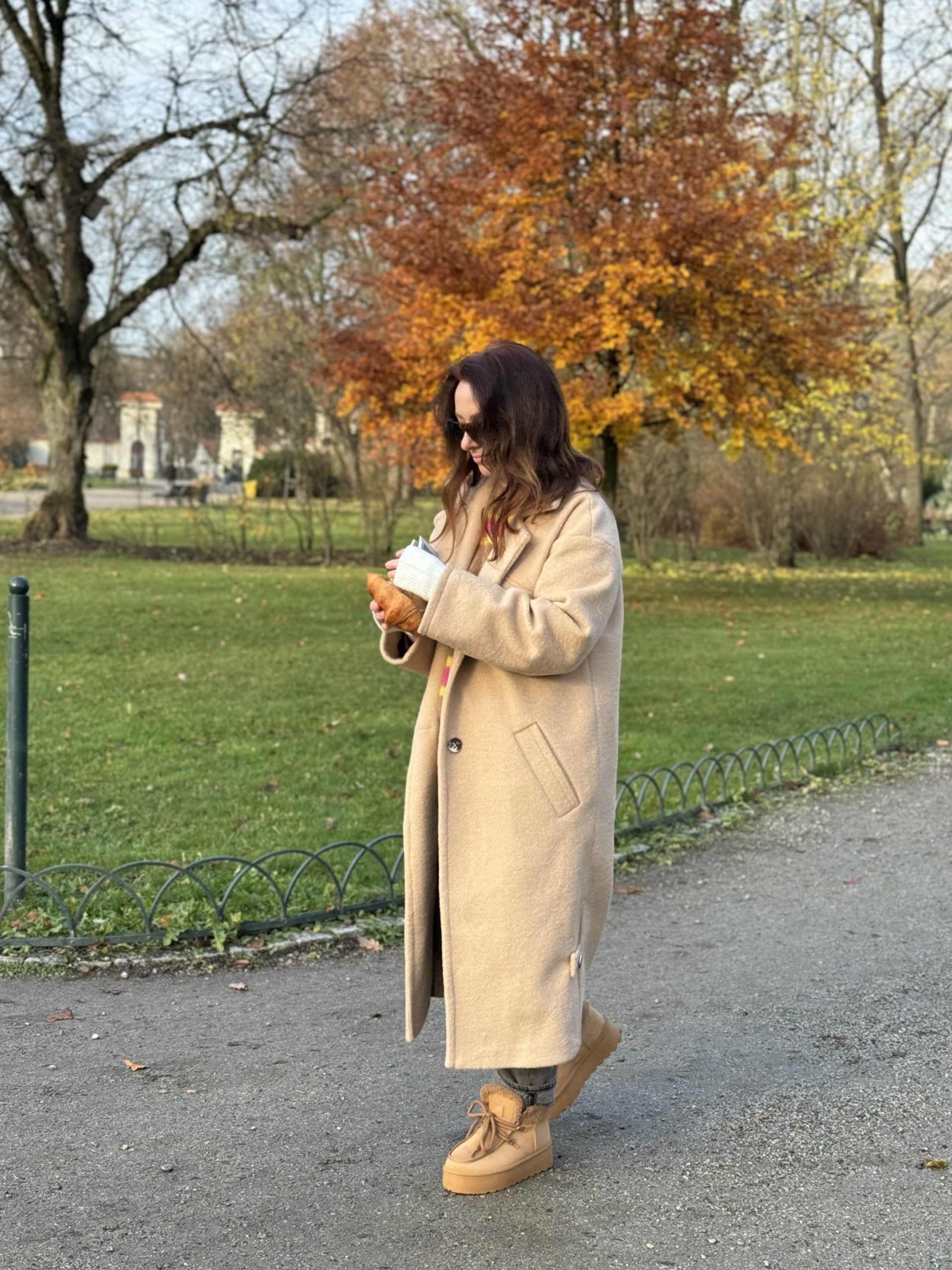 Ilgas vilnos paltas rudos spalvos su viskozės pamušalu. “Oversize” stiliaus, minkšto tekstūrinio audinio, puikiai dera tiek prie suknelės tiek prie laisvesnio stiliaus drabužių. Palto rankogaliai apsiūti taip, kad galima būtu užlenkti norint trumpesnių rankovių, didelės kišenės sutalpins pirštines, telefoną ar panašaus dydžio daiktus, yra papildoma kišenė su saga palto viršutinėje dalyje. Paltas susisega dviem sagom bei turi tokios pat medžiagos diržą, palto šonuose yra skeltukai, kurie susisega sagom.