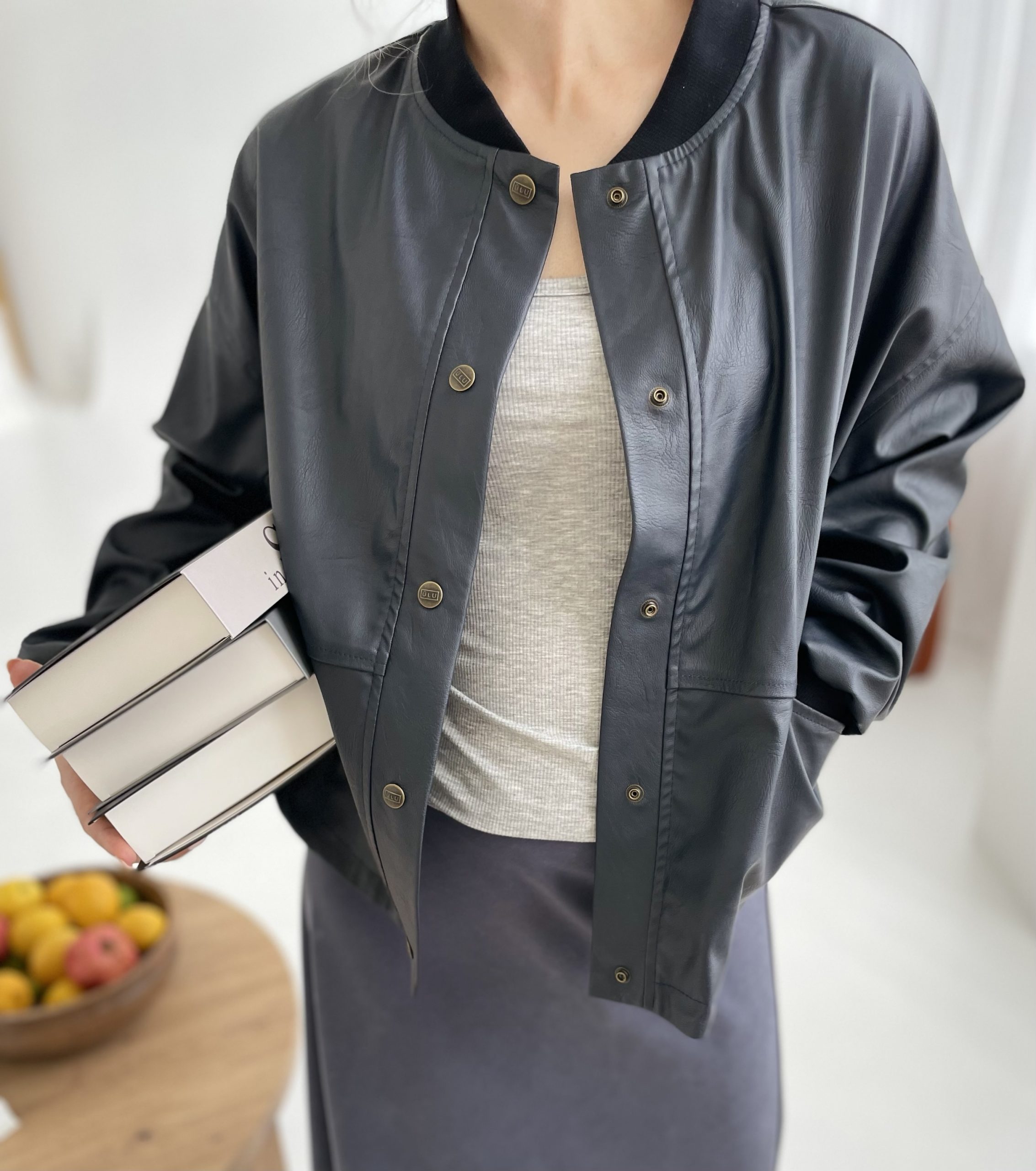 Striukė „Lola” tai patogi ir universali dirbtinės odos striukė, kurią lengvai priderinsite prie įvairių įvaizdžių. Dėl platesnio silueto po ja drąsiai galėsite vilkėto storesnius megztinius ar laisvesnes palaidines. „Bomber” stiliaus įkvėpta striukė išsiskiria tuo, kad apačia nėra suveržta, todėl suteikia dar daugiau komforto bei laisvės judesiams. Trumpa, plati ir itin patogi, o jos spalva puikiai įsilies į jūsų garderobą ir taps neabejotinai mėgstamiausiu pasirinkimu.
