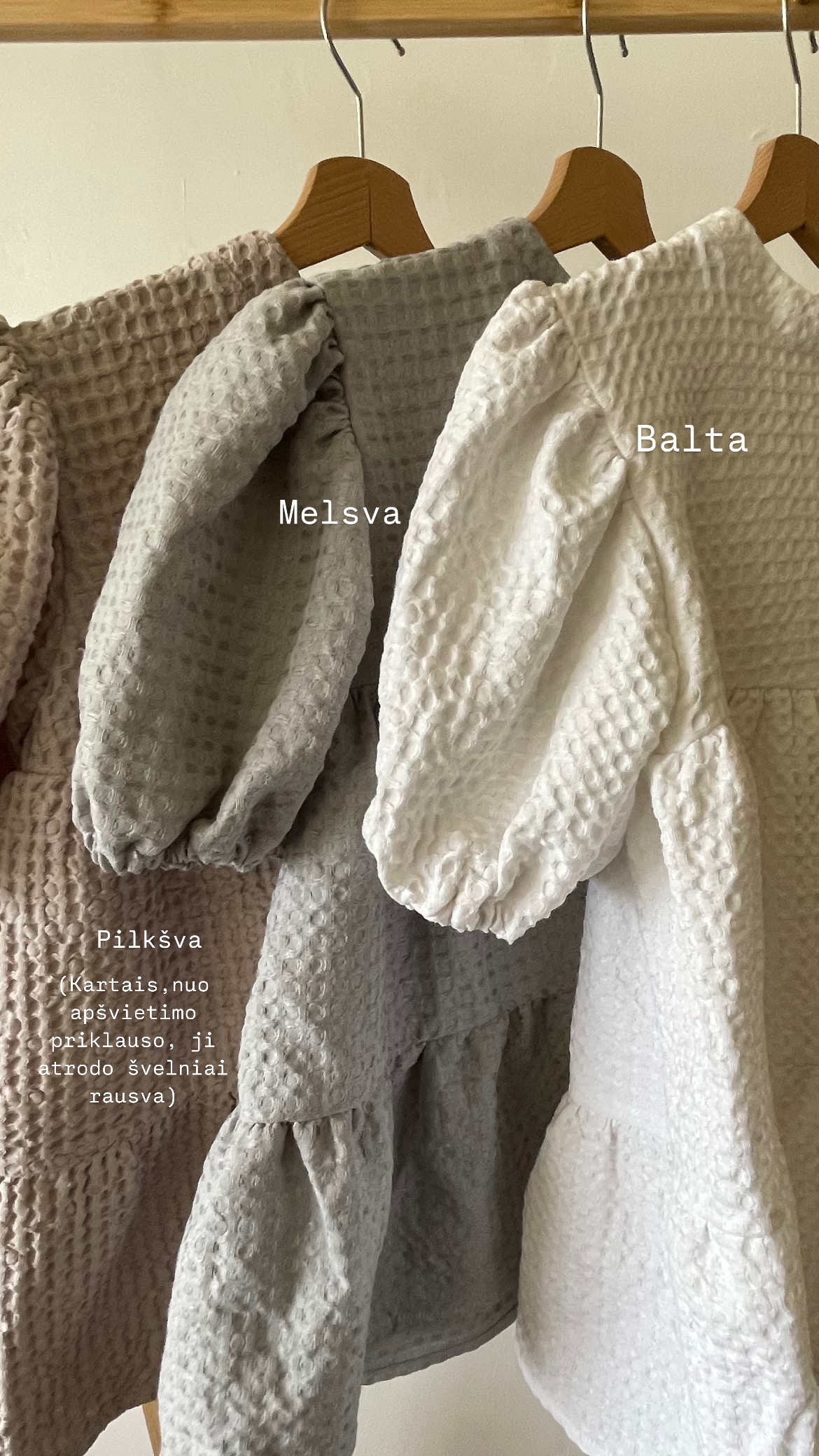 Po pirmojo skalbimo audinys gali dar labiau paminkštėti ir atrodys, kad 1cm patrumpėjo, bet tai tik todėl, kad suknelių nebūtina lyginti, svarbu tinkama priežiūra skalbiant 😉